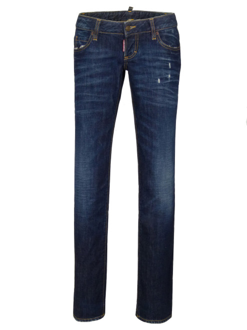 Description Low rise slim fit jeans Dark wash Worn effect Contrast stitching 5 pockets Button fly Made in Italy Content: 100% Cotton Care instructions: Machine wash