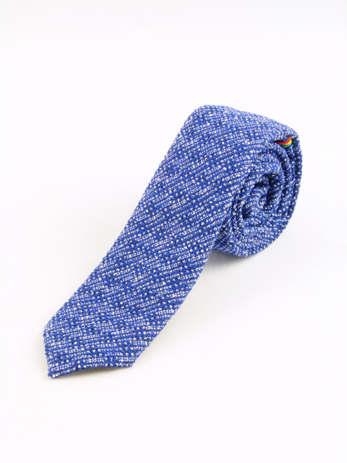 Description Woven slim tie 6cm wide Two tone Made in Italy Colour: Blue & white Content: 70% Cotton 30% Silk